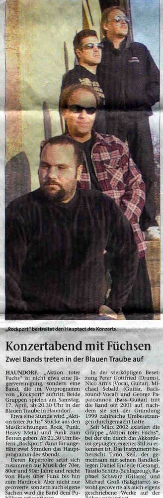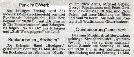 Erlanger Nachrichten  9.5.2003 Strohalm Programmheft  Mai 2003 Fränkischer Tag  16.04.2004 Nordbayerische Nachrichten /  Herzogenaurach  16.04.2004
