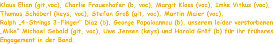 Rockport Fine Rock, Funk & Blues Danke an...... Ihr wart alle ein Teil von ROCKPORT und habt Eure Ideen  eingebracht. Ohne Euch gäbe es ROCKPORT heute nicht. Danke für alles, Leute !!!!!